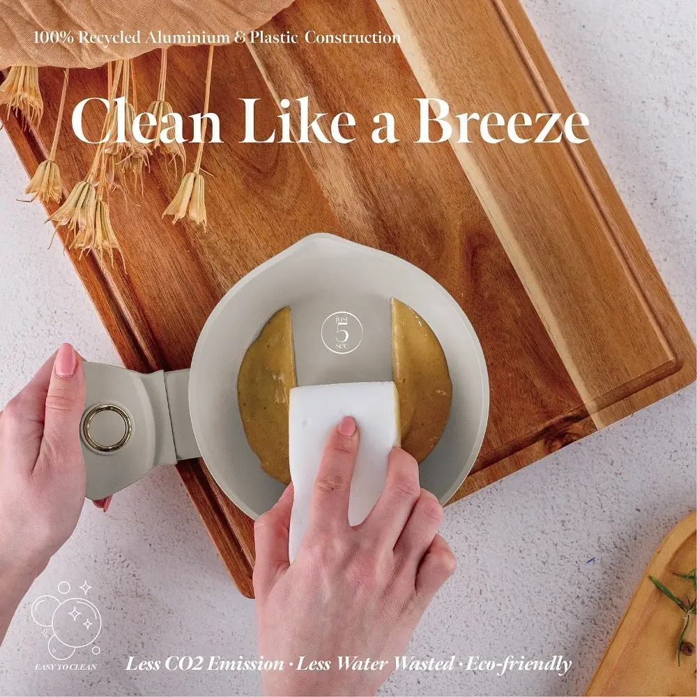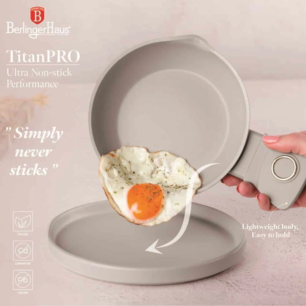- Forged aluminum thick wall body and a 3-layer non-stick TitanPro coating.