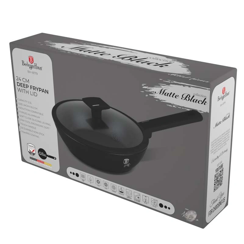 Berlinger Haus 24cm Deep Frypan with Lid - Matte Black