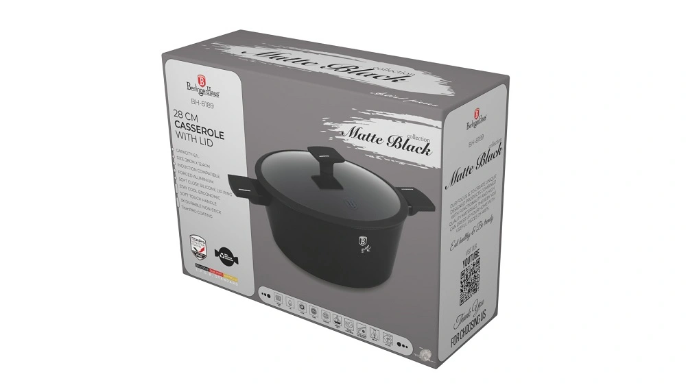 Berlinger Haus 28cm Casserole with Lid - Matte Black