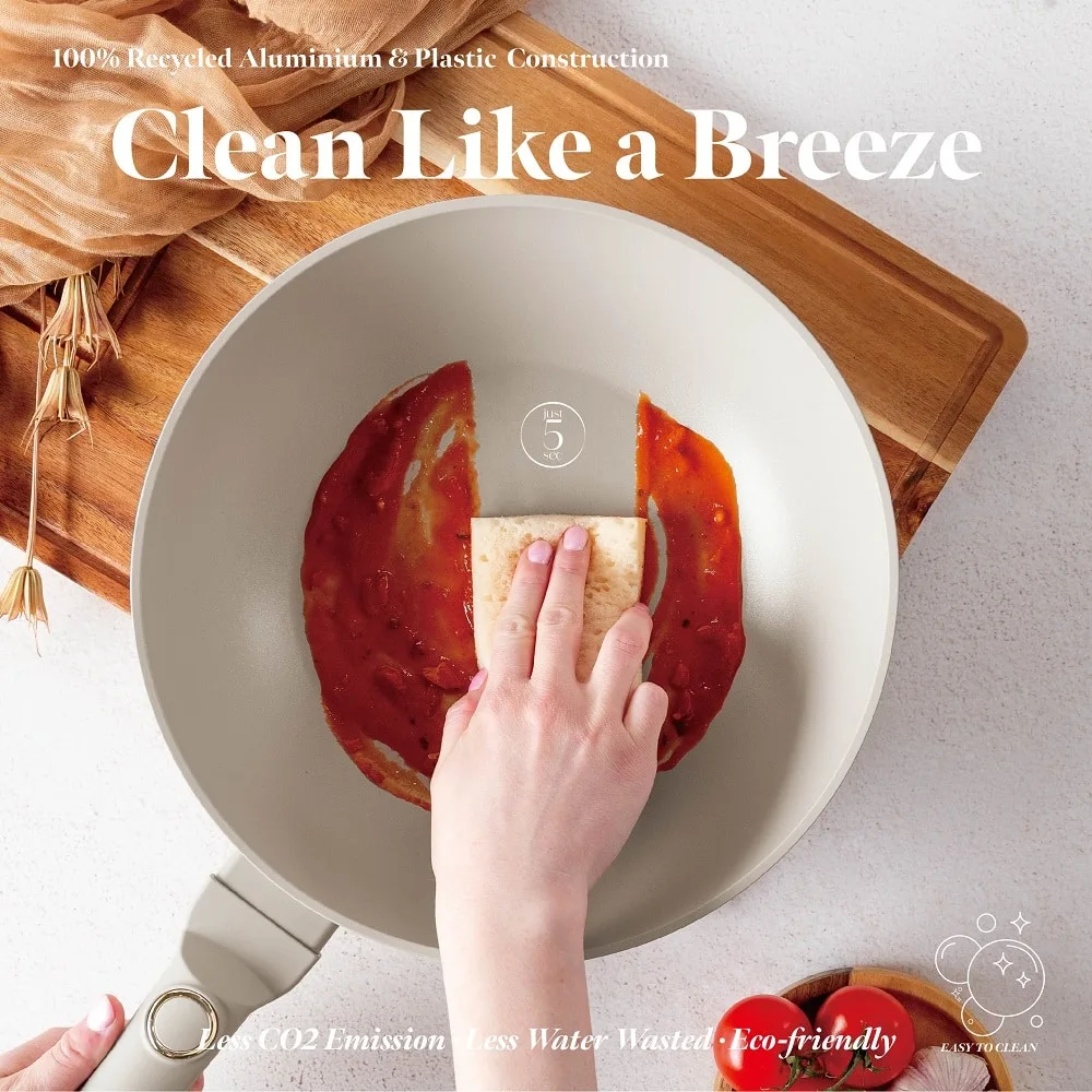 - Forged aluminum thick wall body and a 3-layer non-stick TitanPro coating.