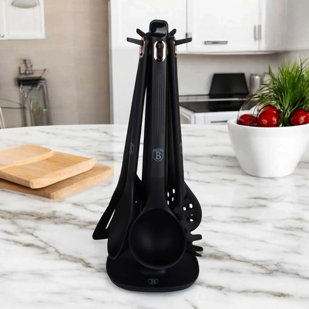 Berlinger Haus 6-Piece Kitchen Tool Set with Stand - Black-Rose