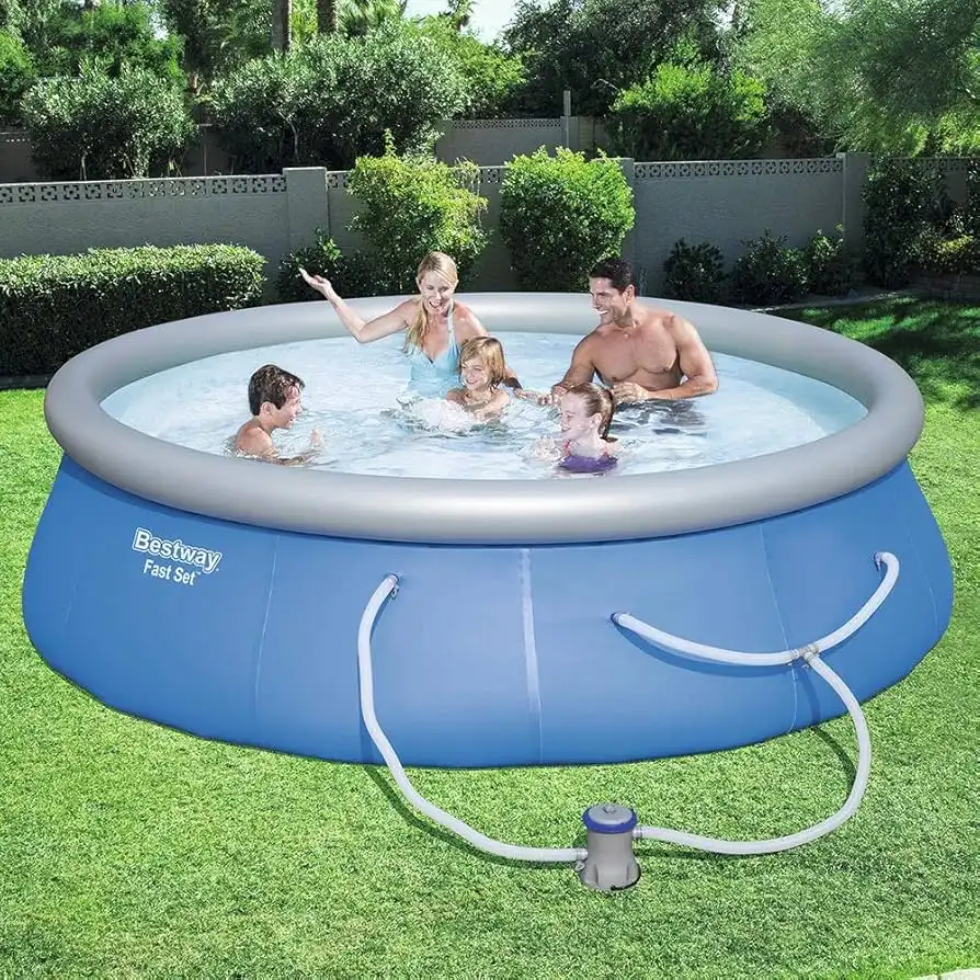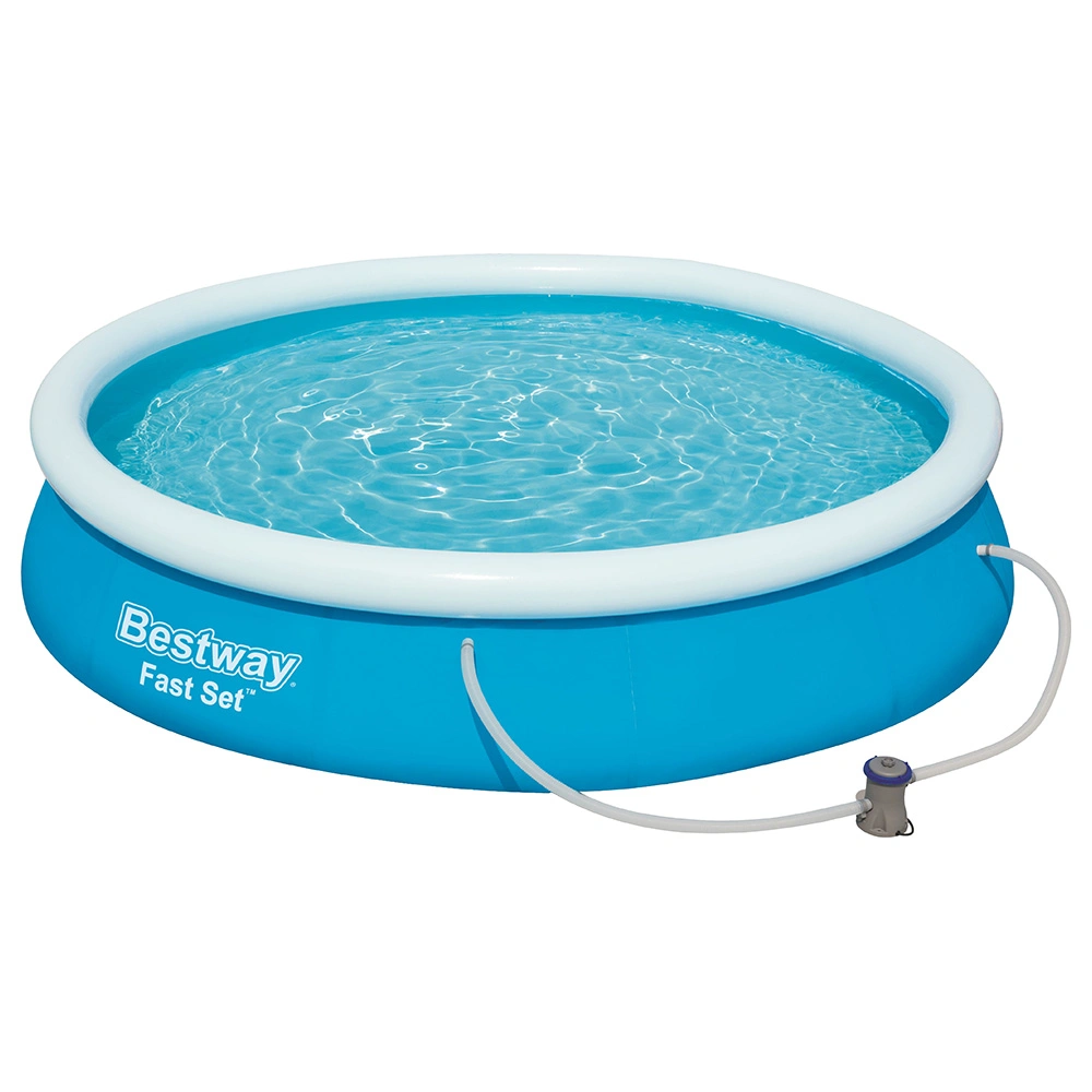 Enjoy summer fun with the Bestway Fast Set Pool. Easy to set up—just inflate the top ring and fill with water to be ready in minutes. Perfect for families and kids to enjoy swimming in the garden or backyard.