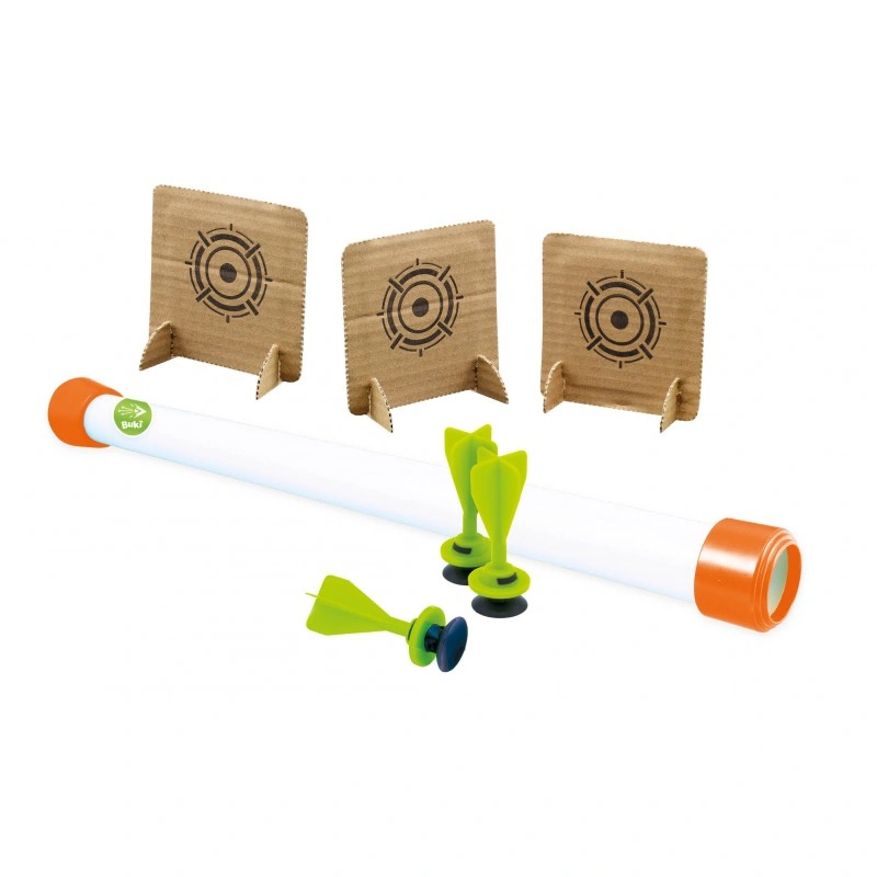 Insert a dart and blow hard into the blowpipe to hit the targets in total safety.