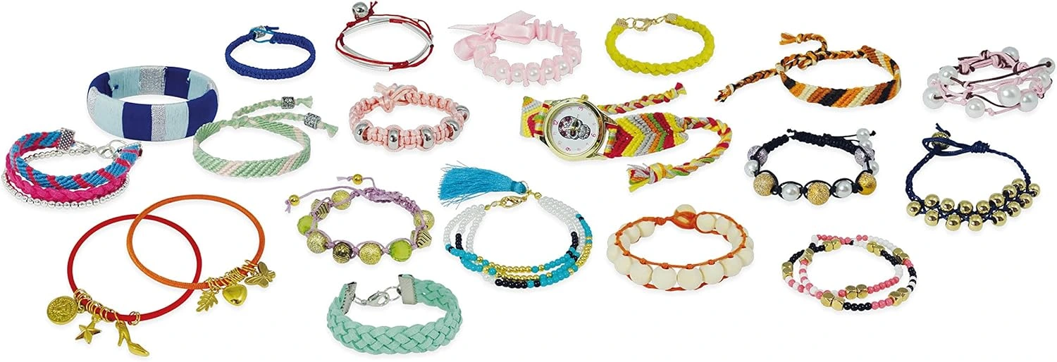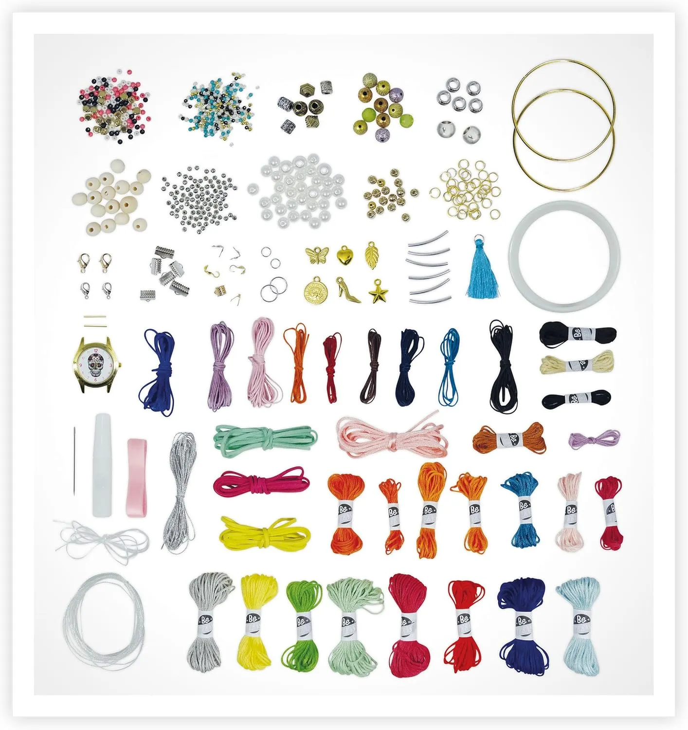 A kit to make 20 trendy bracelets including Shamballa bracelets, ribbon bracelets, friendship bracelets, charm bracelets, and more!