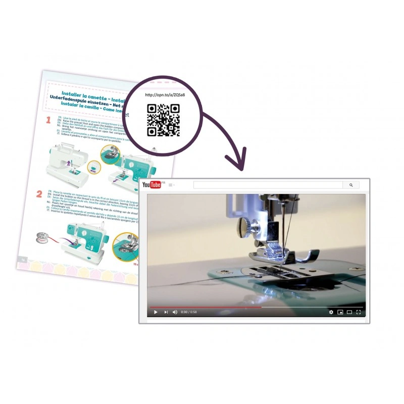 A sewing machine to learn the basics of the sewing and carry out 6 trendy projects: bookmark, key ring, blank pocket, coin purse and needle cushion. The speed of the machine is suitable for children with 2 speeds in automatic mode or using the pedal. Children can choose 12 different points including ziz-zag stitch to overlay fabrics. A machine specially designed for children with a large working area, a needle protector, a threading and easy tension adjustment! The fabrics used for projects each have a different texture: fur, coated cotton, jersey, cotton, felt, imitation leather. Many accessories including metal cans and spare machine needles are included. The sewing achievements and bases are explained step by step in an illustrated leaflet with Flash Co for access to video tutorials! Machine works with mains adapter included. Full colour illustration Suitable for ages 10 and up.