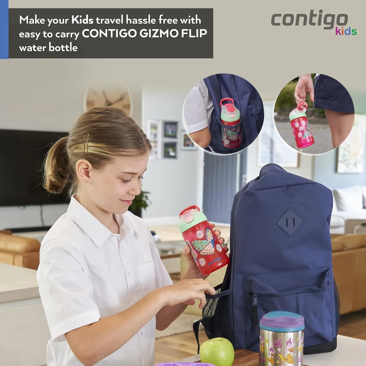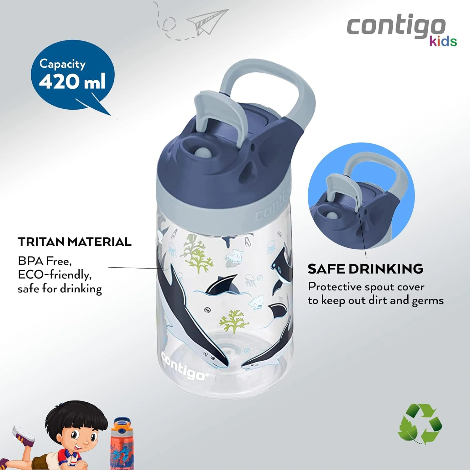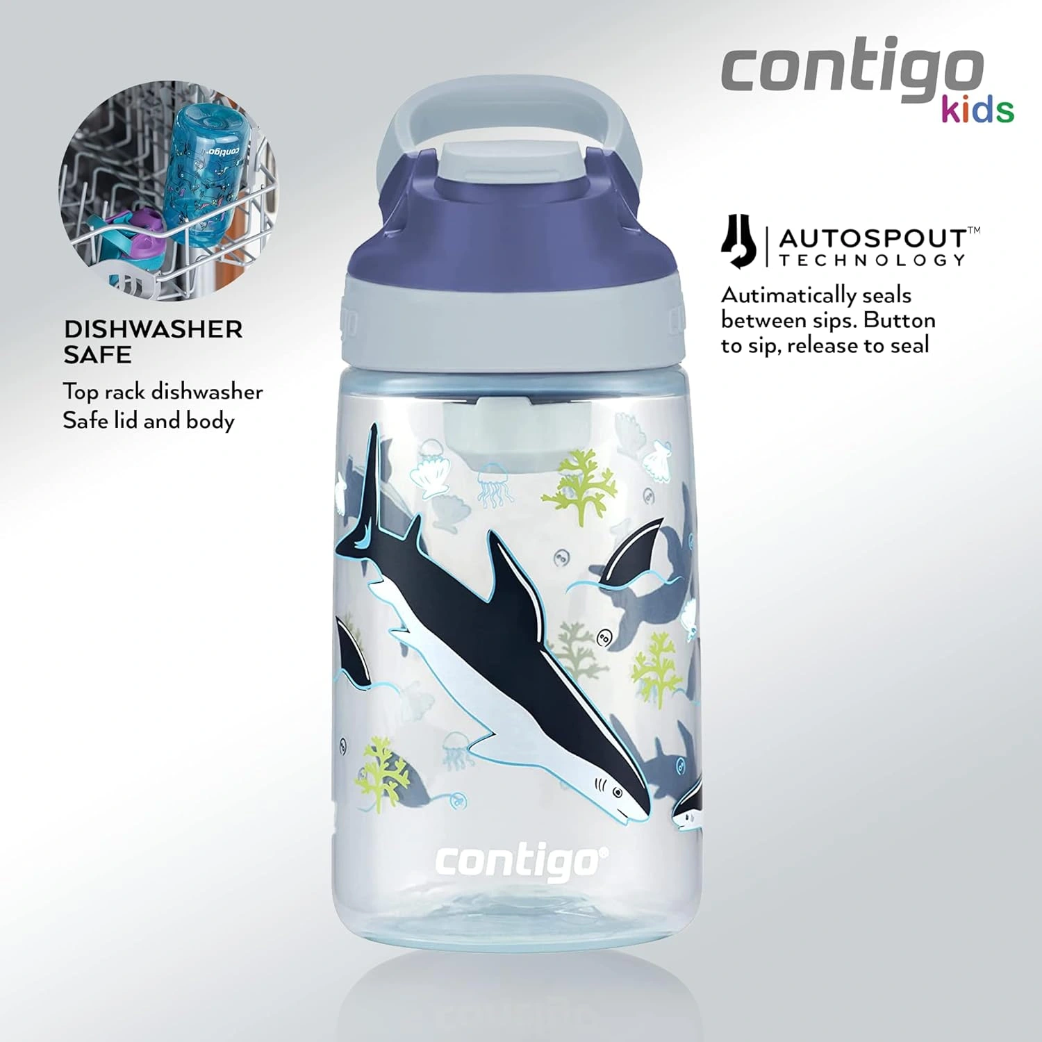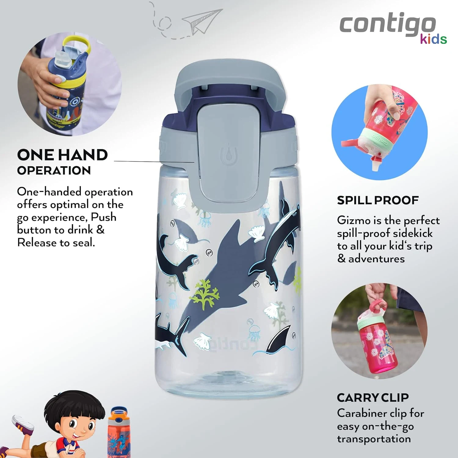 Contigo Autoseal Kids Gizmo Sip – 420 ml, Macaroon Sharks