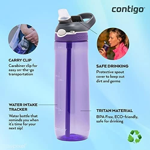 Contigo Autospout Ashland Water Bottle – Stainless Steel, 720 ml, Grapevine