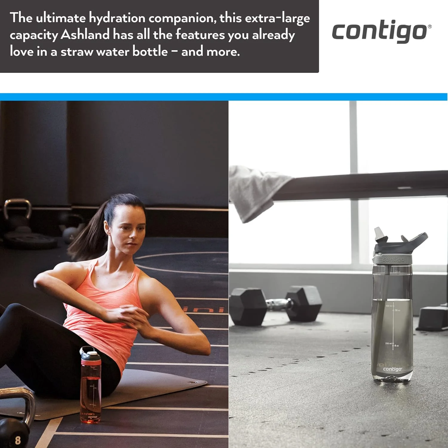 The Contigo Autospout Ashland Water Bottle (720 ml) is crafted from double-wall vacuum-insulated stainless steel, keeping drinks hot or cold for extended periods. It features Autospout™ technology for easy, spill-free sipping, with a modern Scuba blue design ideal for everyday use and travel. The lid opens fully for easy cleaning, and the bottle is top-rack dishwasher safe.