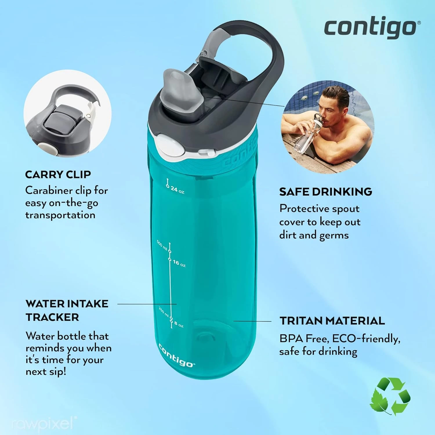 Contigo Autospout Ashland Water Bottle – Stainless Steel, 720 ml, Scuba