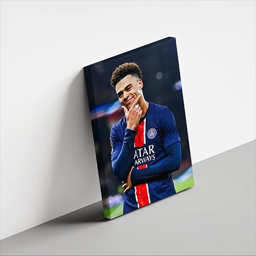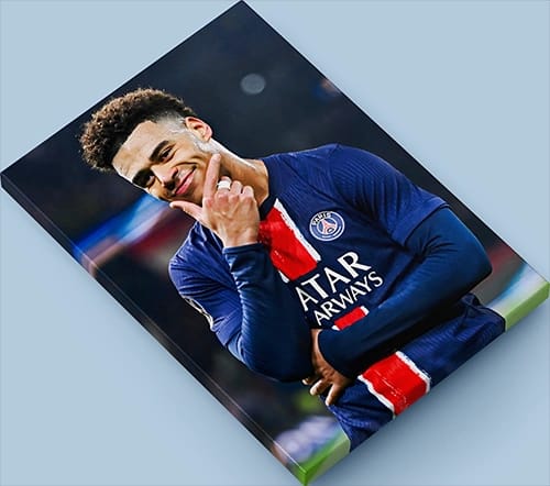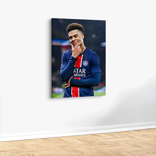 Elevate your décor with the “Désiré Doué from Paris Saint-Germain Football Club” printed canvas. This vibrant artwork captures Doué’s talent, energy, and rising presence on the field, making it a perfect addition for football fans and collectors alike.