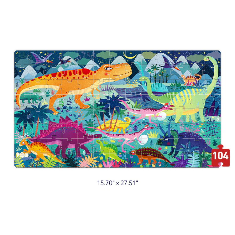 - Portable Puzzle Box series has a handbag design, easy to carry and store. 6 themes to meet different children's interests, making it a great gift choice. This puzzle features the night of the dinosaur age with huge dinosaurs active in the mountains and lakes