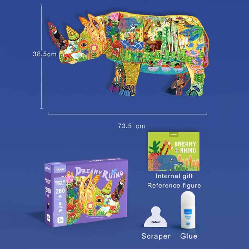 Mideer - Large Animal - Shaped Puzzle Dream Rhinoceros - 280 pieces - Age 6+