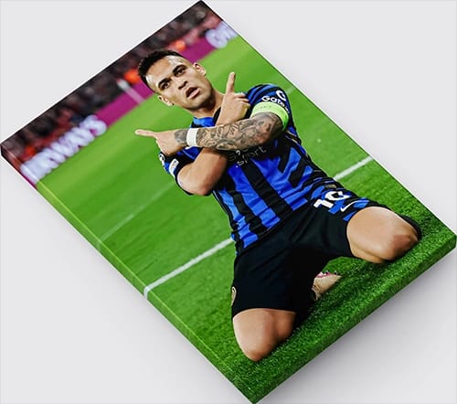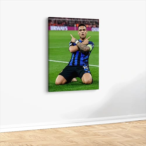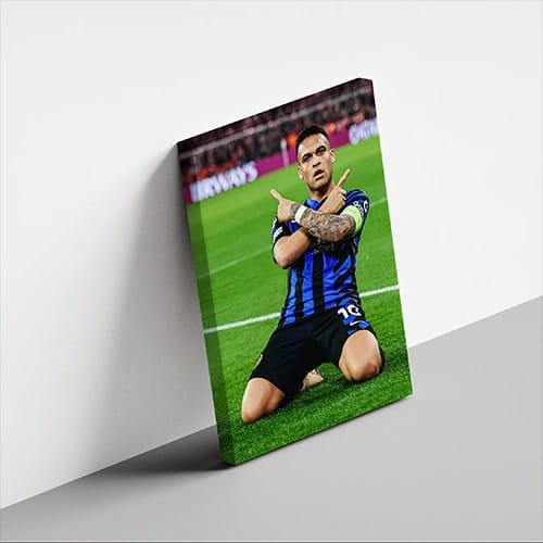 Elevate your decor with the “Lautaro Martínez from Inter Milan Football Club” printed canvas. This dynamic artwork highlights Martínez’s power, precision, and passion on the field, making it a perfect addition for football fans and collectors alike.
