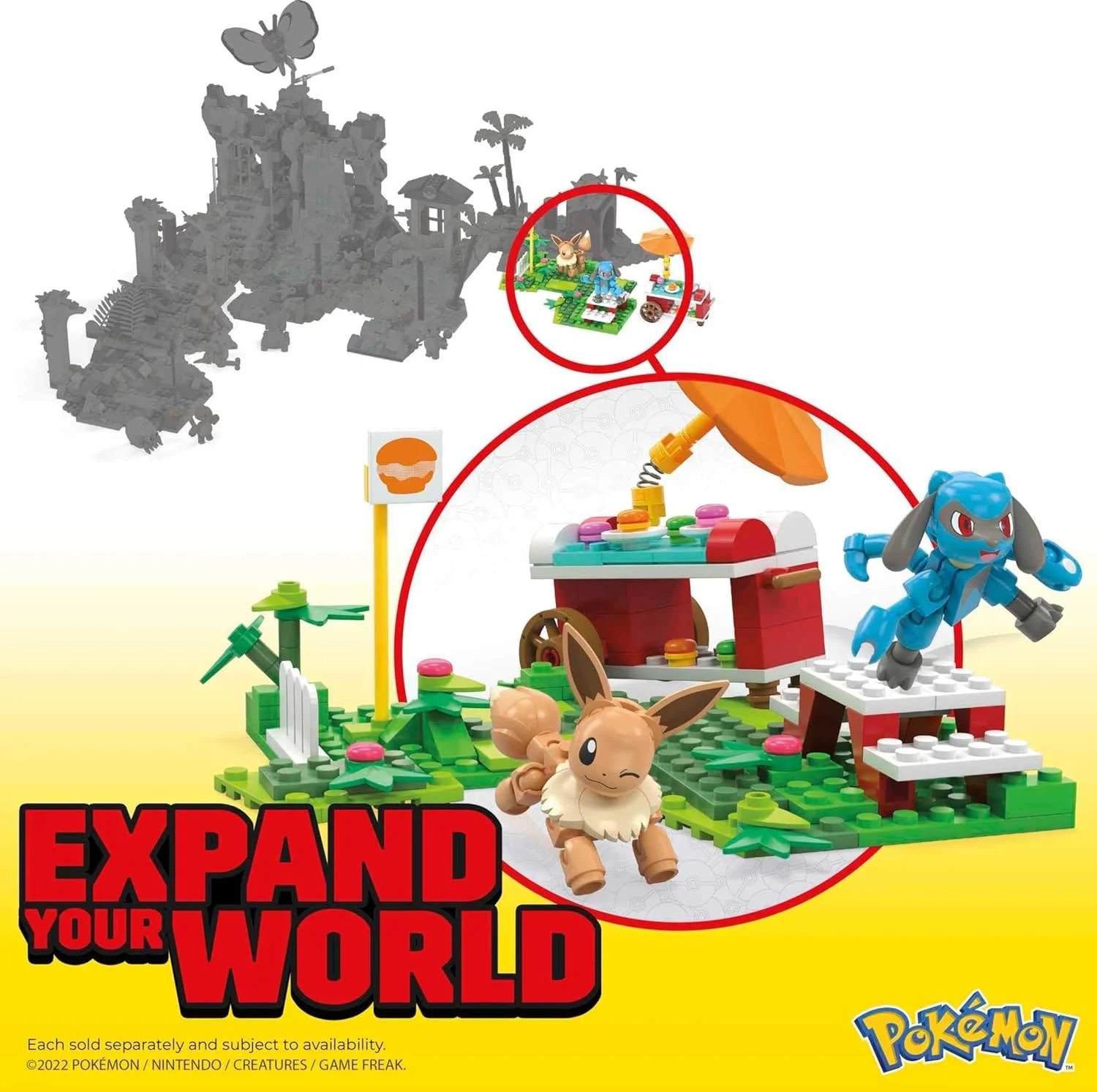 MEGA Pokémon Building Toy Set – Pokémon Picnic with 193 Pieces, 2 Poseable Characters Eevee & Riolu, Age 7+