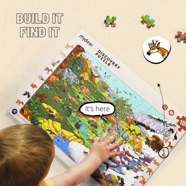 Mideer Observation Puzzle is a fun and engaging game that combines the challenge of assembling a puzzle with the excitement of a scavenger hunt. It features a unique and eye-catching theme, with vibrant and colorful illustrations that capture the imagination. Each puzzle has a border with a list of different objects to find hidden within the puzzle itself. Players must carefully examine the puzzle pieces and search for the specified objects, adding an extra layer of challenge and fun to the game.
