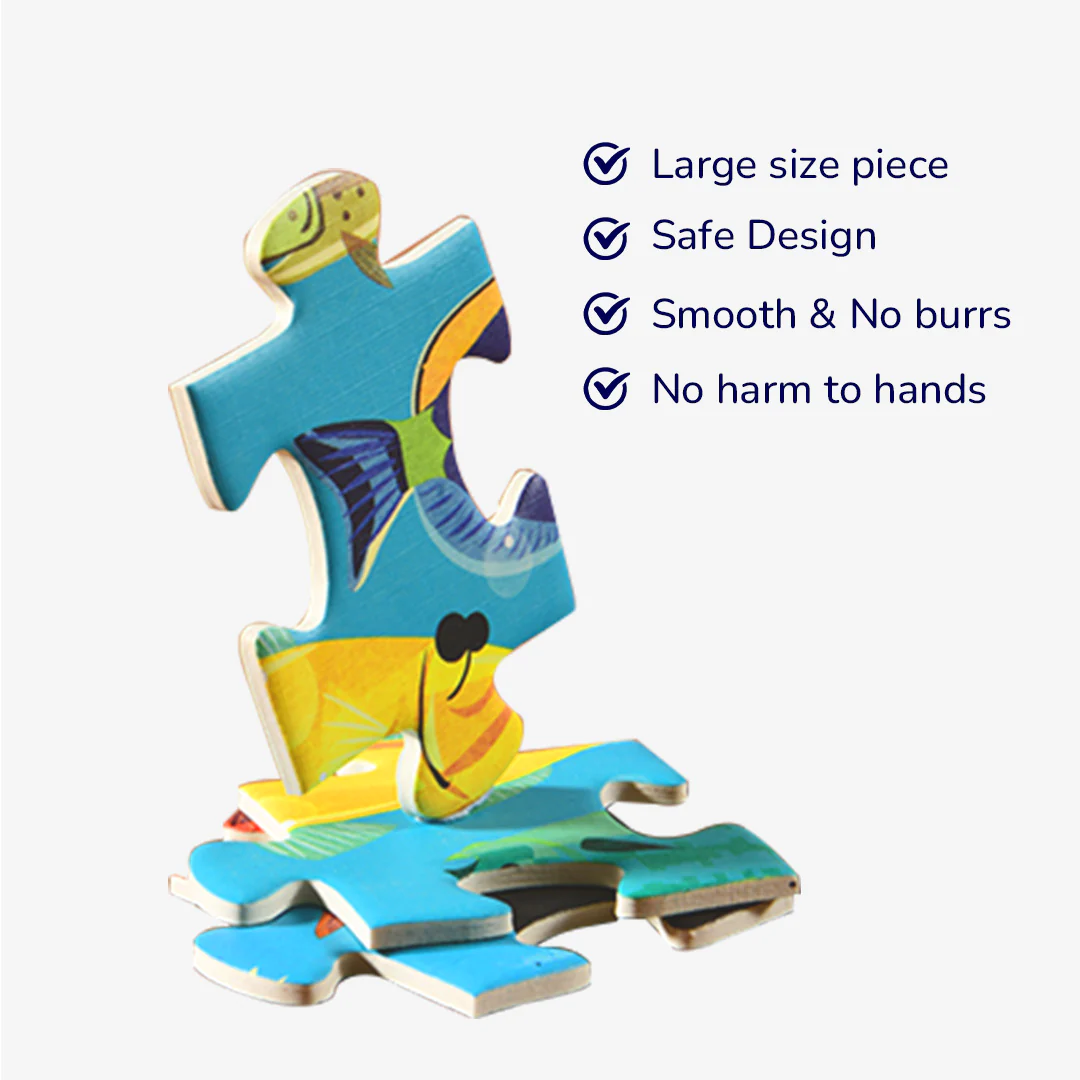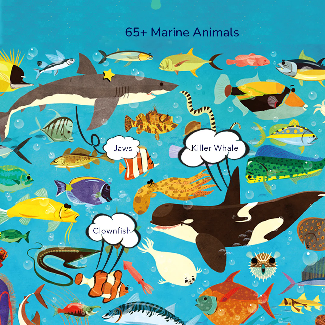 Let’s Learn! puzzle series leads children to learn hundreds of species during playing. Barrel packaging design that is free of mess and easy to store. Each puzzle has a double-sided science brochure. Get yourself right into the undersea world. This puzzle features over 65 types of ocean creatures. Dive in now!