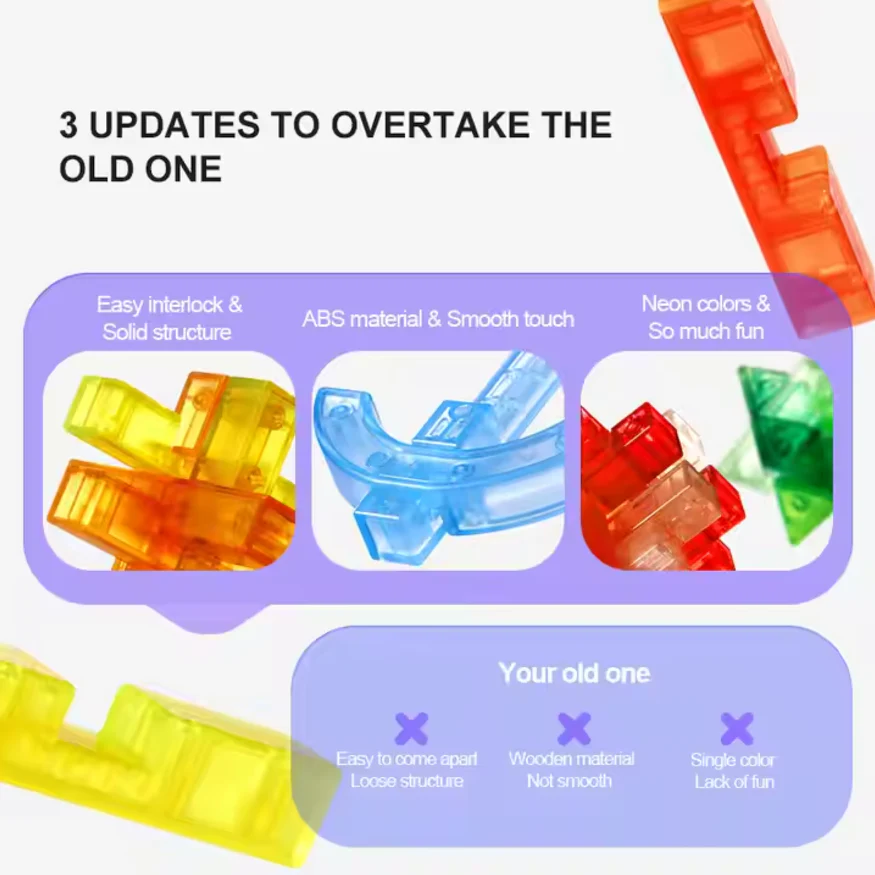 Kongming lock is a traditional Chinese intellectual toy, originating from mortise and tenon structure in ancient architecture. It's intangible cultural heritage & ancient wisdom. The Mideer neon series is made of ABS material with a smooth touch. Solid structure & easy interlock for kids. It can help improve kids' logical thinking, imagination, concentration, and patience.