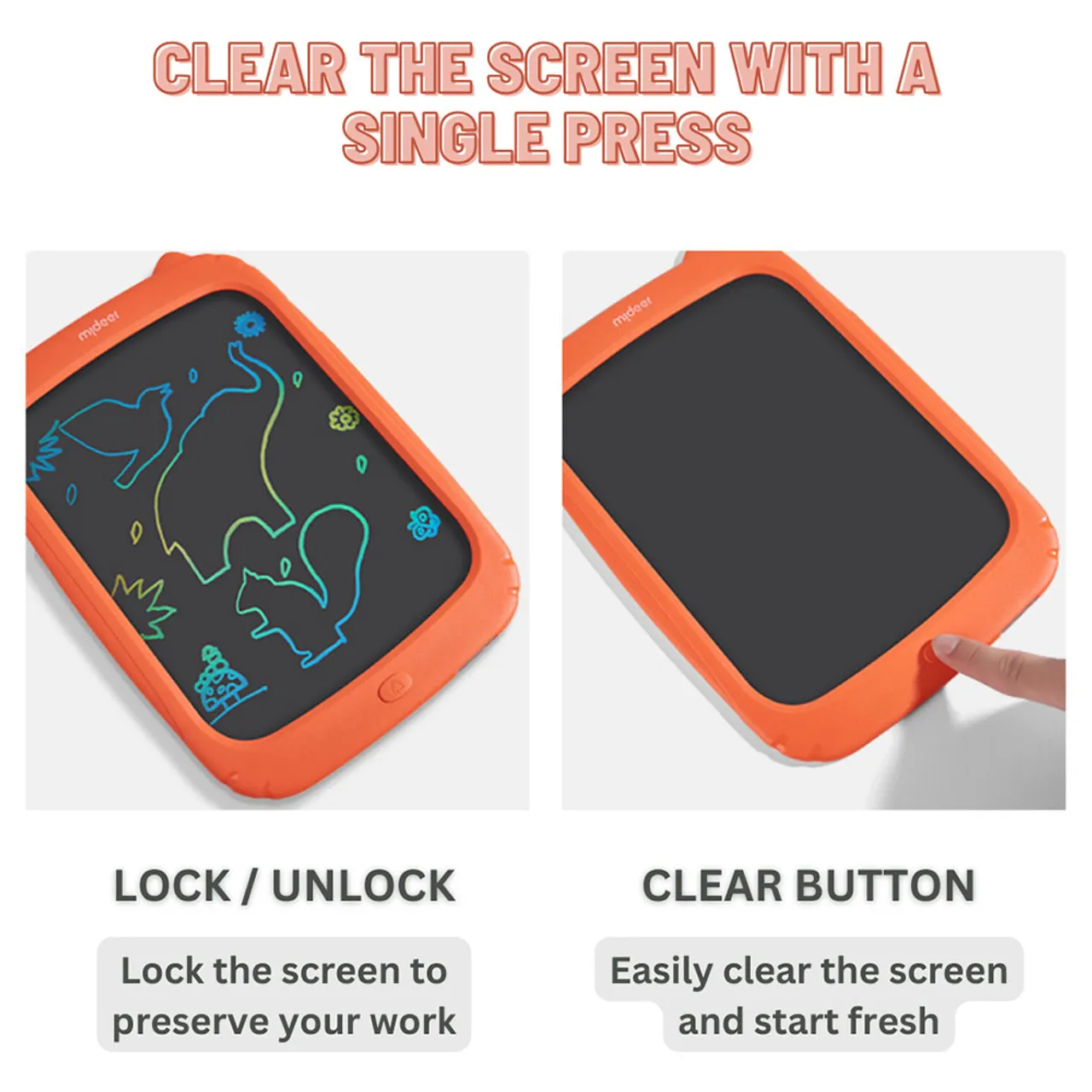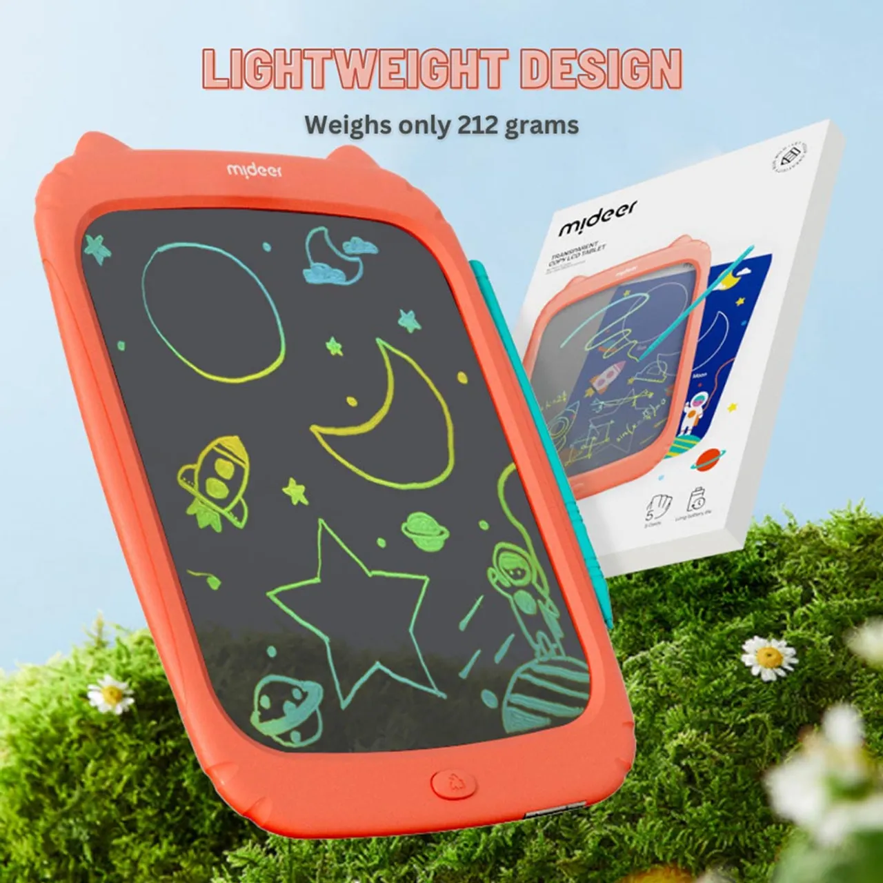 The Mideer LCD Writing Tablet is an environment-friendly electronic alternative to paper, pencils, and pens. It’s easy to use. Simply write on the tablet with the included stylus. A push of the button will clear the board for another try. It's the perfect tool for taking notes, practicing handwriting and arithmetic, drawing, and playing games.