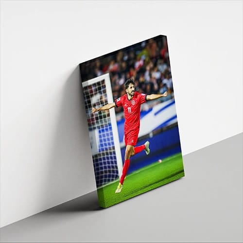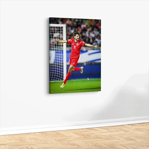 Elevate your decor with the “Yazan Al-Naimat from Jordan’s Football Club” printed canvas. This vibrant artwork captures Al-Naimat’s skill, passion, and iconic presence on the field, making it a perfect addition for football enthusiasts and collectors alike.